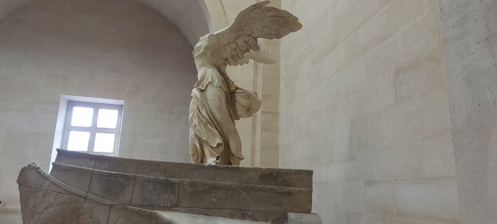 Admittedly, I did not have the patience to wait among the throngs for the Mona Lisa, but I’ve seen it many times before, so contented myself with my glimpse from behind thne Madding Crowds. Nike, The Winged Victory, was another favorites, as was Venus Demilo and the medieval foundations of the Louvre.