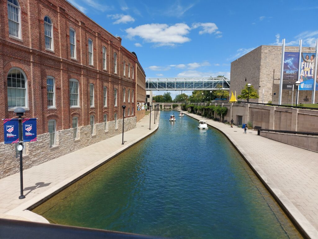 One of the stops along the way was a city new to both of us. I’ve driven by Indiana’s capital city multiple times, but have never before taken the time to drive in, park the car and explore. But on the day we were driving by, the sky was blue and the sun strong, and my son and I decided to nip in and see the town.